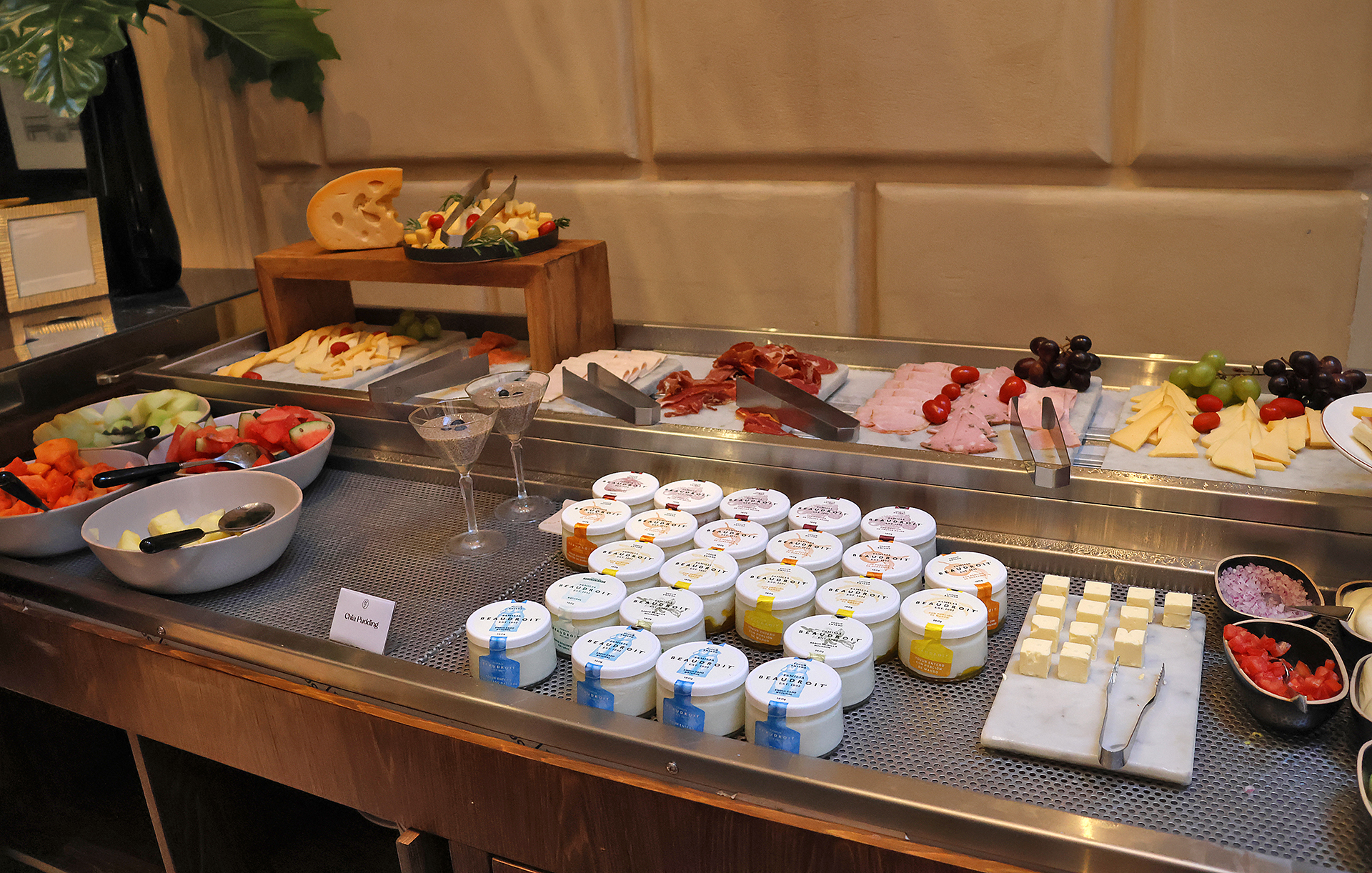 …while assorted yogurts, fruits, cold meats, cheeses, and savory condiments were located at another station. People mistook the cubes of butter for cheese when they bit into them. I did not photograph the third station that was located inside of Cantina restaurant itself, which offered more assorted fruits, olives, and different kinds of juices. I must have drank at least four glasses of the grapefruit juice, which I particularly enjoyed.