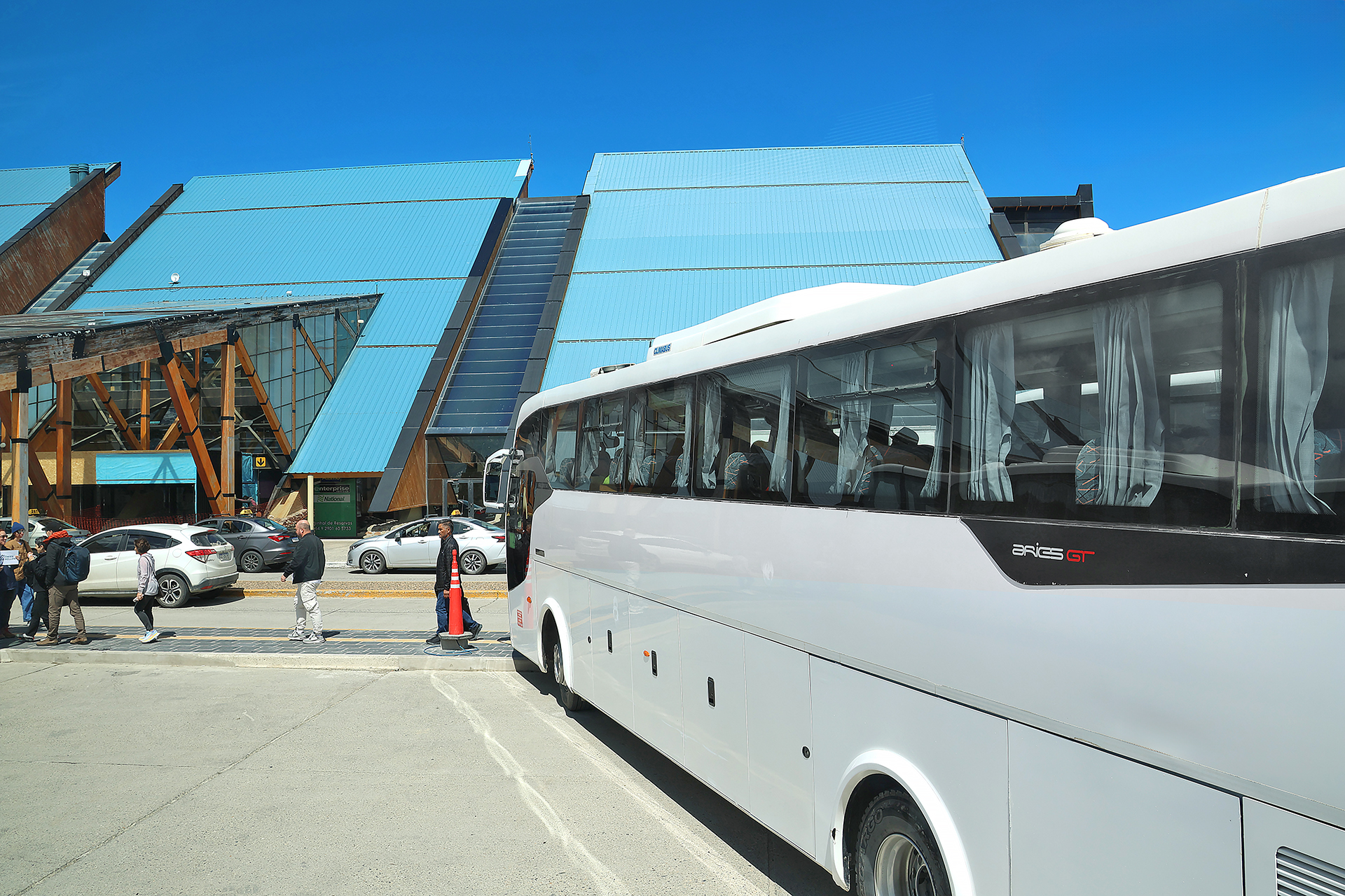 Buses awaited us outside of the terminal to take us from the airport to the pier at what is known in Spanish as El Fin del Mundo, which translates into English as the End of the World.