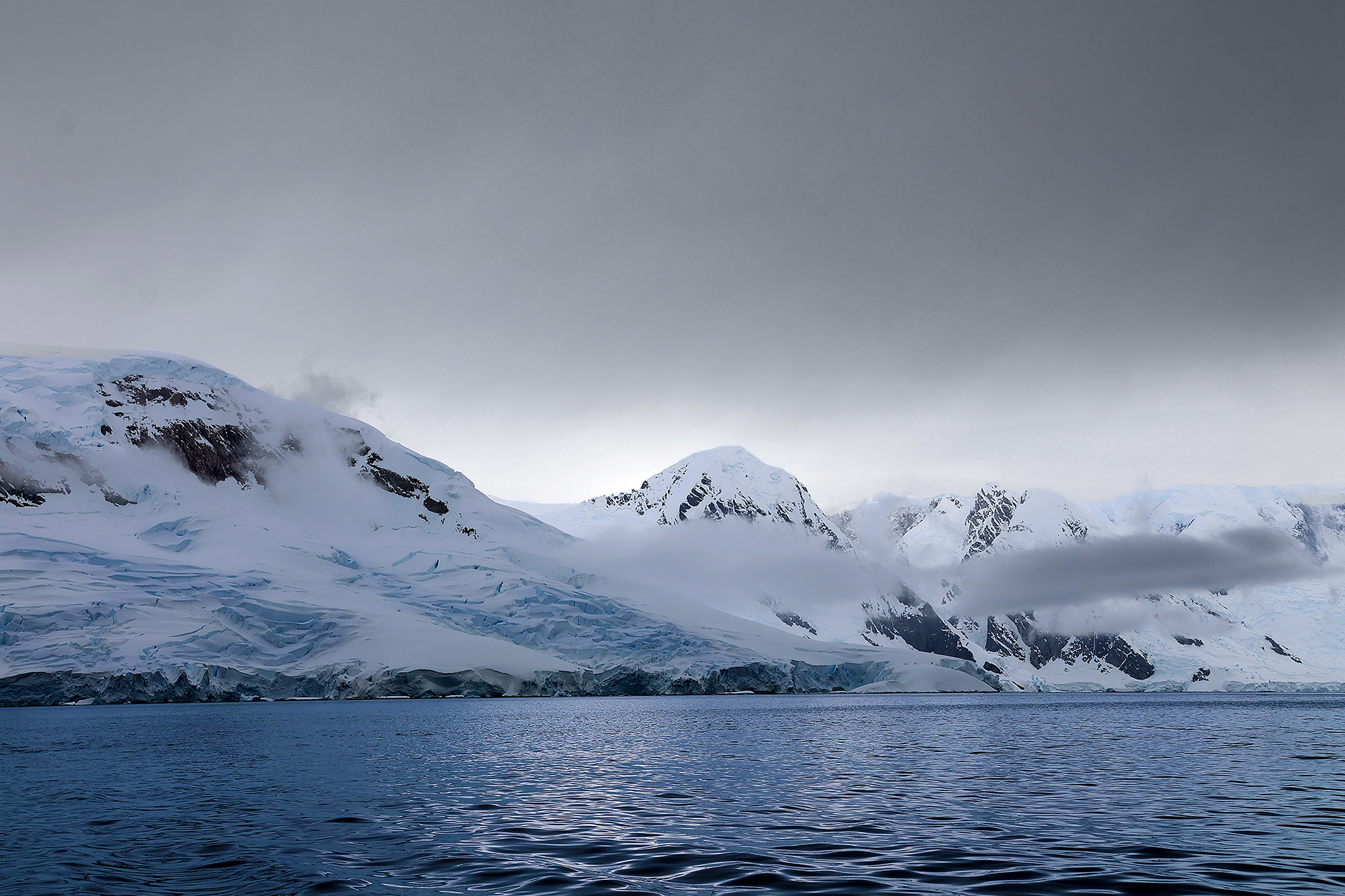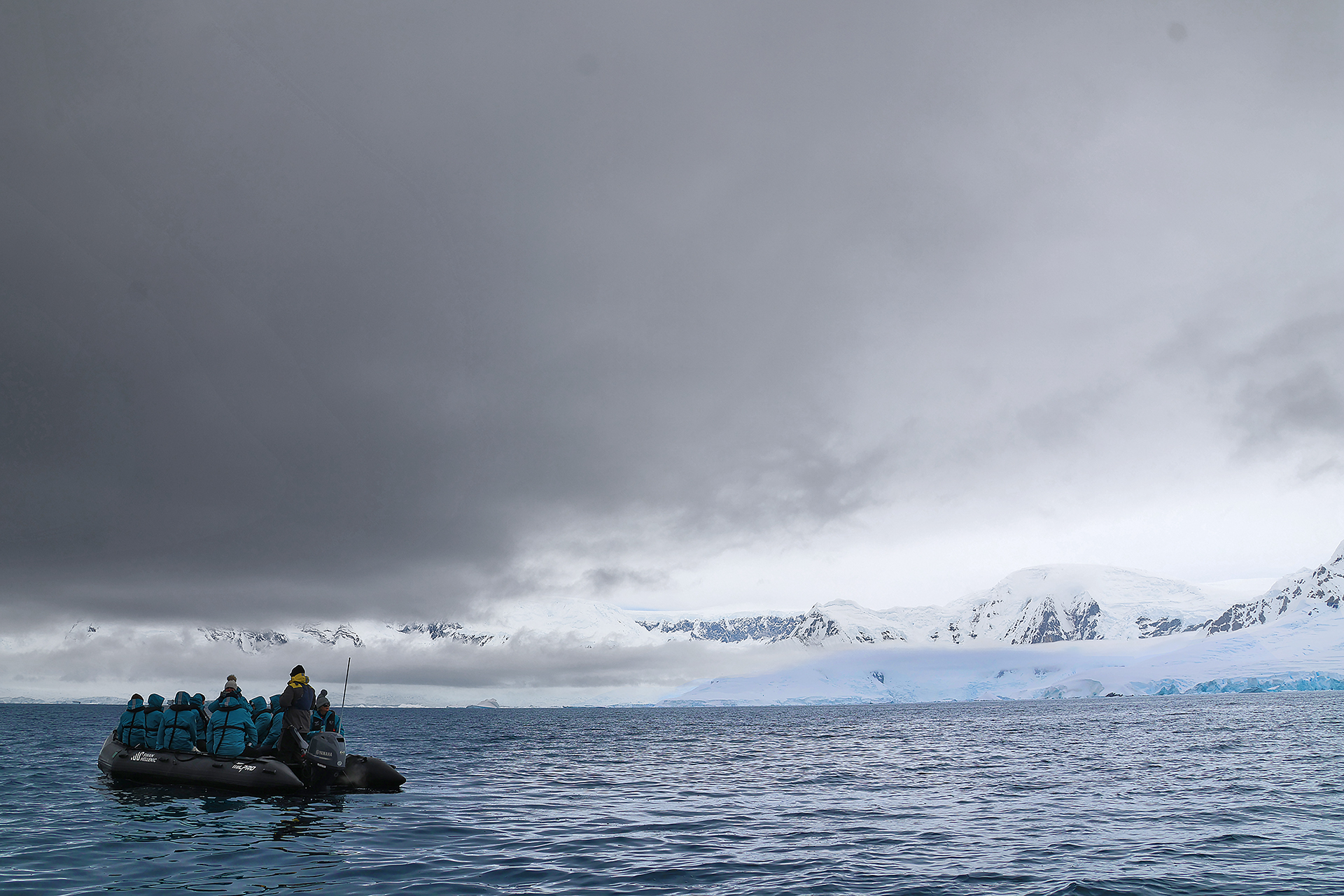 The afternoon started off slow as we all ventured out on zodiacs from the ship and out onto Charlotte Bay. Despite the gloomy weather which seemed to appear as though the air could be unbearably frigid, the weather was actually mild and pleasant with no wind. Even if no whales showed up, the scenery was spectacular; and the dark clouds actually added to the experience. Floating icebergs, shifting snow, and moving clouds mean that the landscape does not remain the same for long.