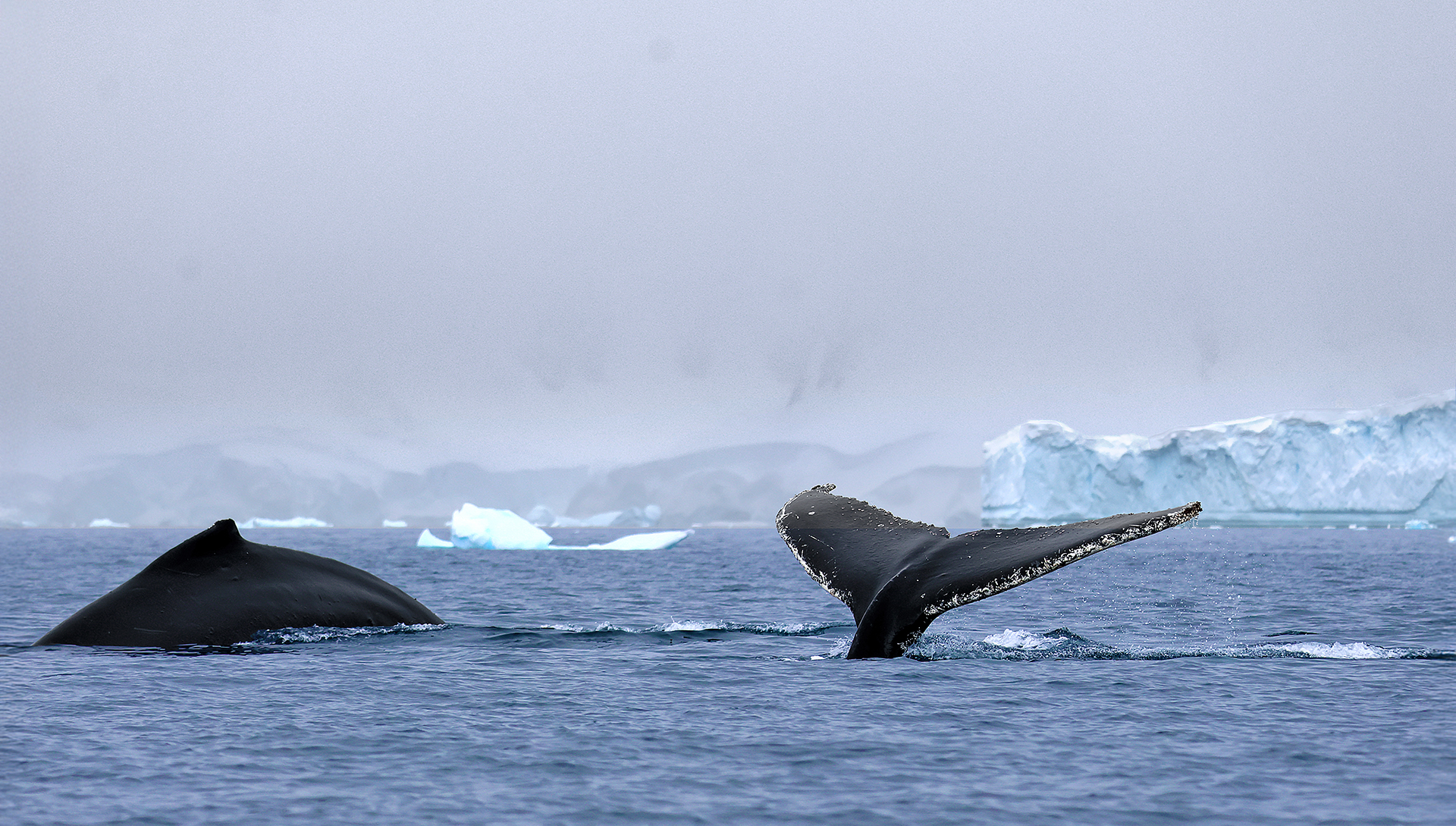 Whales in Charlotte Bay in Antarctica