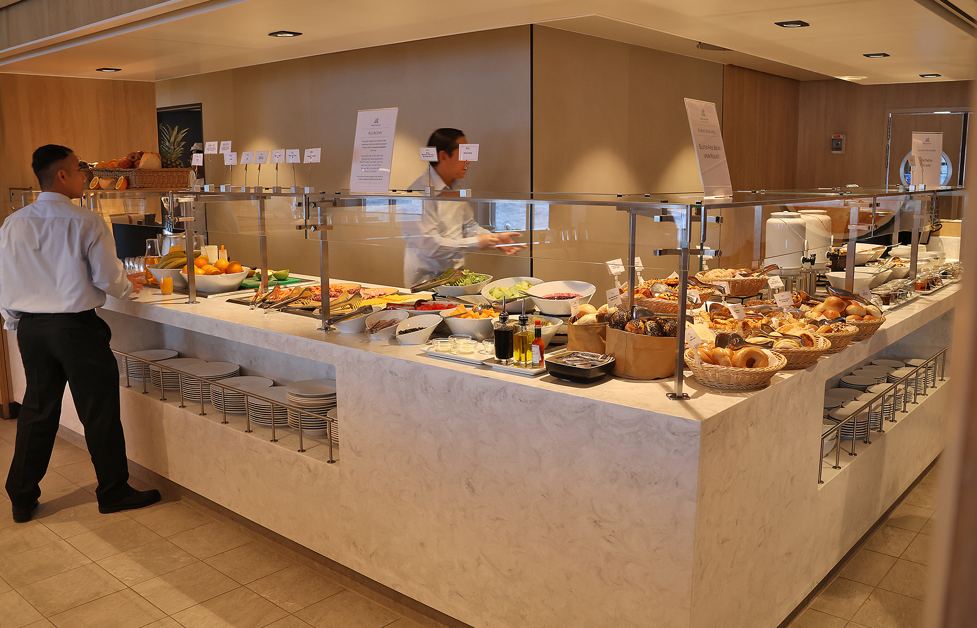 We decided to head down to Swan Restaurant for breakfast shortly after taking a video of the Drake Passage that morning. Because every morning was set up as a buffet with the same vast selection of food, this article will be the only article which discusses the breakfast in detail. Breakfast is my least favorite meal; but I thoroughly enjoyed breakfast every day aboard the Swan Hellenic SH Minerva.