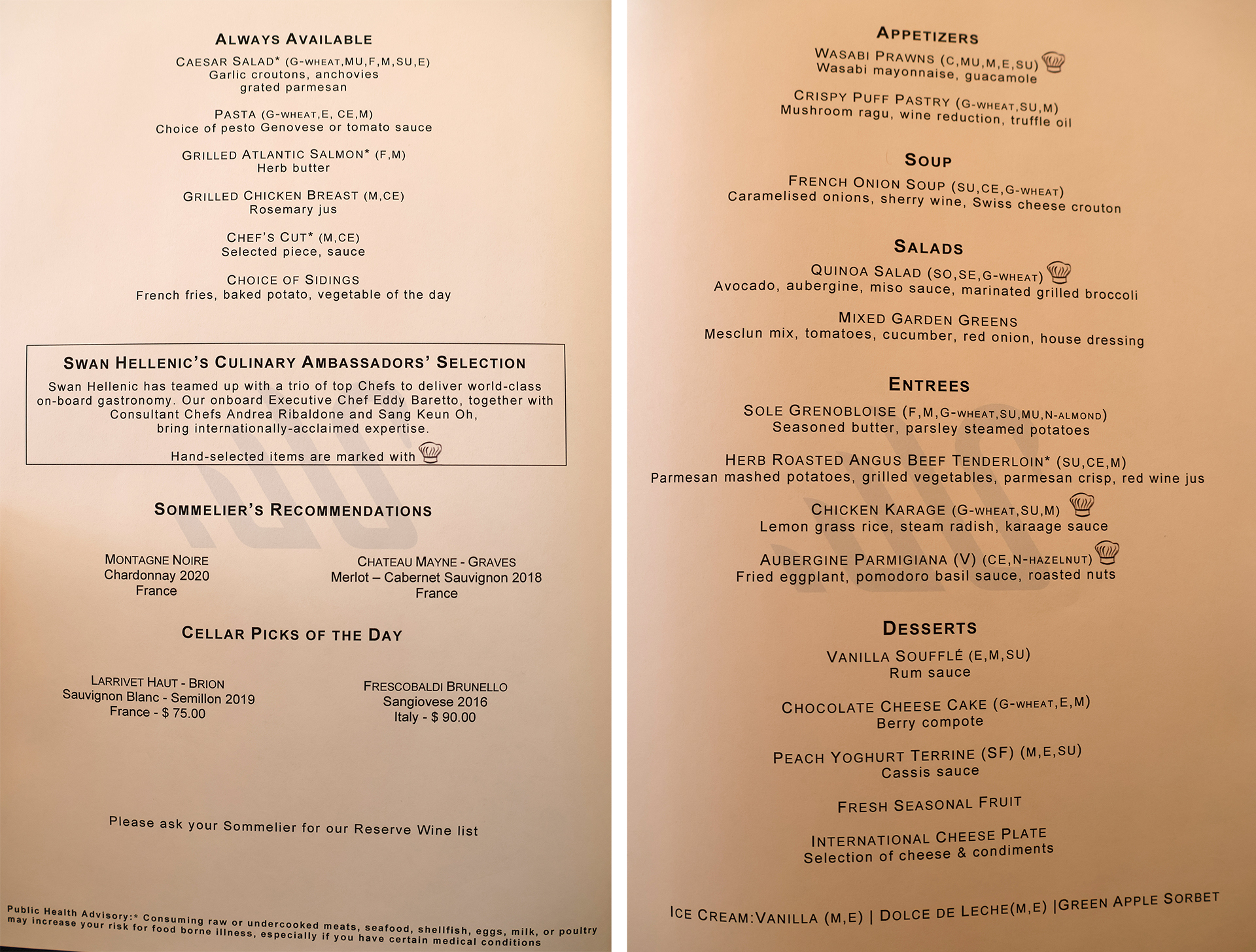 We were then handed menus, as a formal dinner service was offered instead of a buffet on the previous night. I had a difficult time choosing among the options I wanted — but then again, ordering two salads, no soup, two entrées, and three desserts was okay to do, as the servers strived to please guests as much as possible.