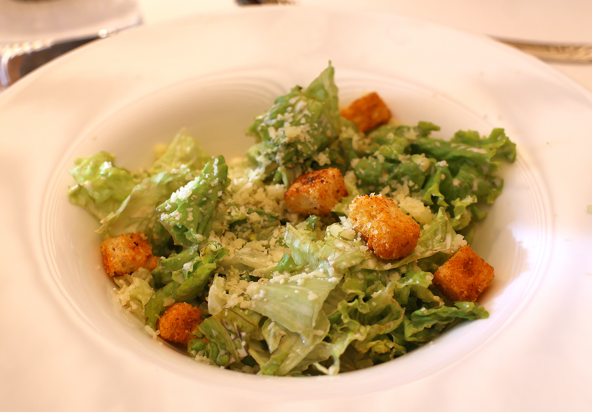 Although two types of salads were offered that evening, I decided to go with the Caesar Salad with garlic croutons, anchovies, and grated parmesan. Anchovies are what sealed the deal for me.