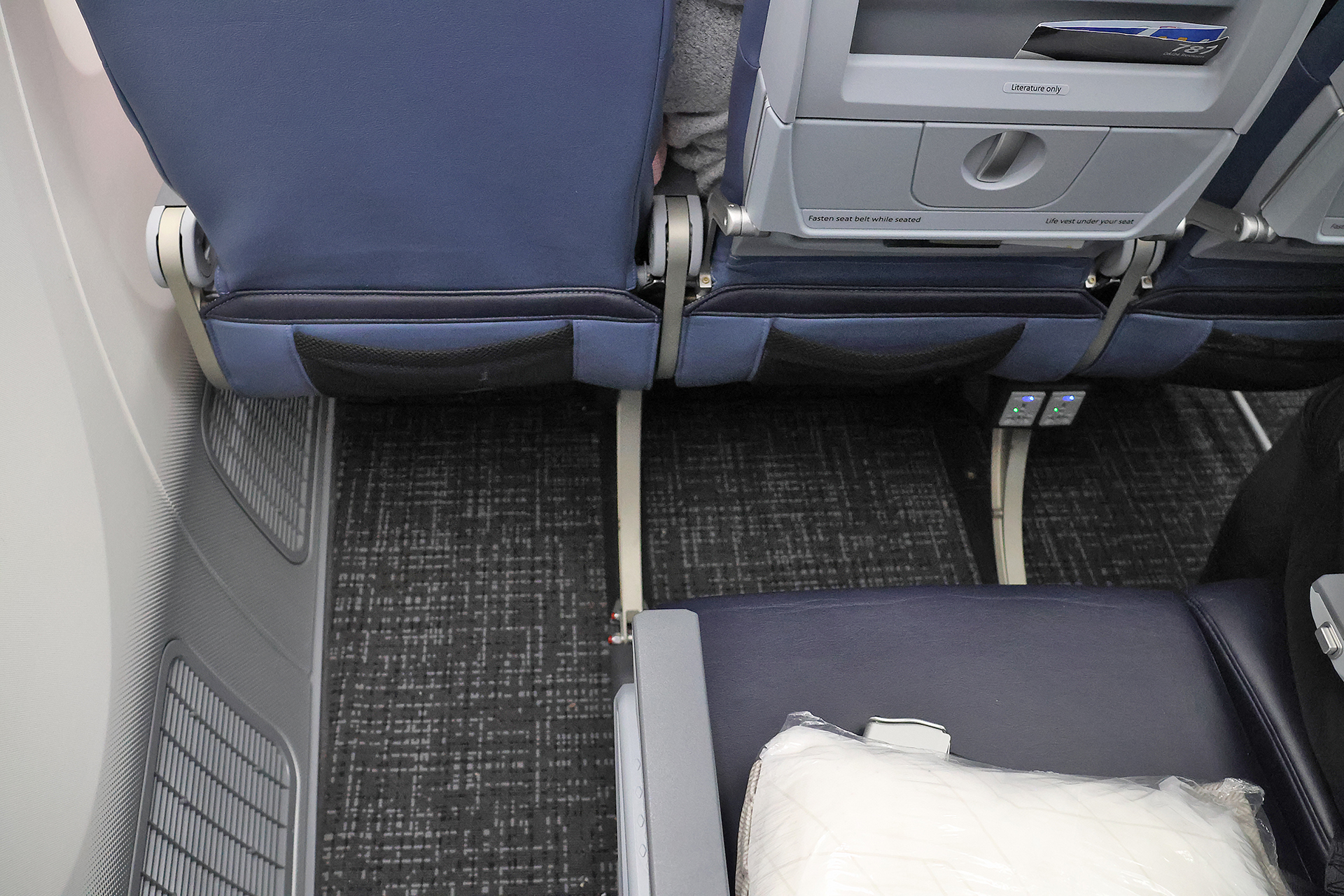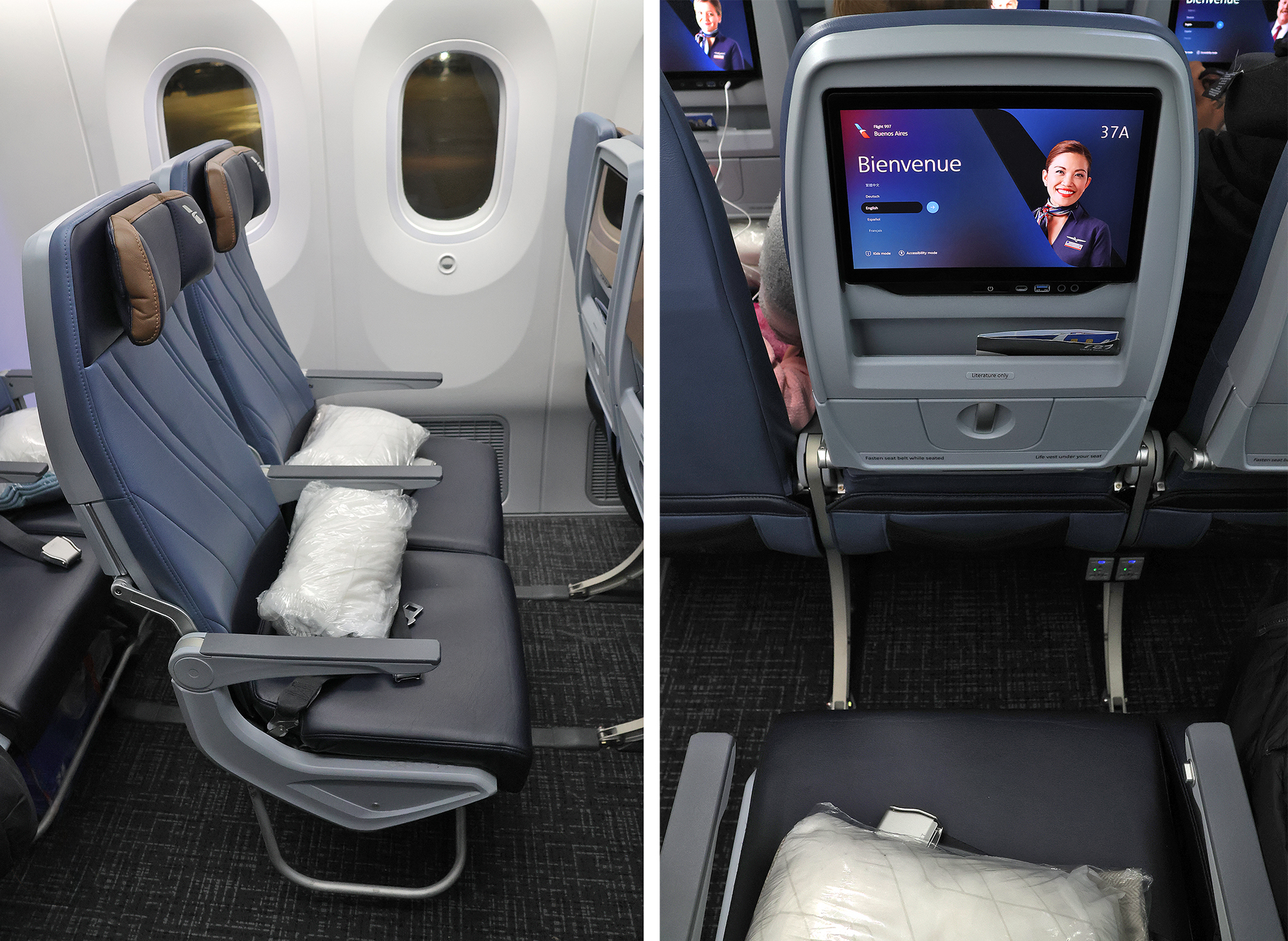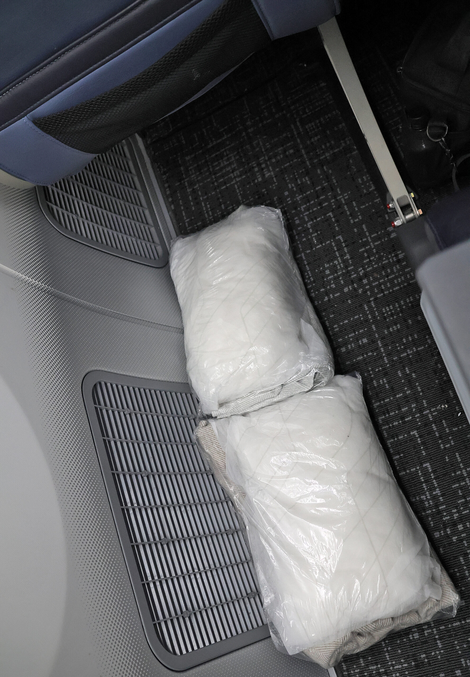 Pillows and blankets were wrapped in plastic and awaited passengers on each seat, which had little padding and became increasingly uncomfortable during the later part of the flight. The leg room was barely adequate.