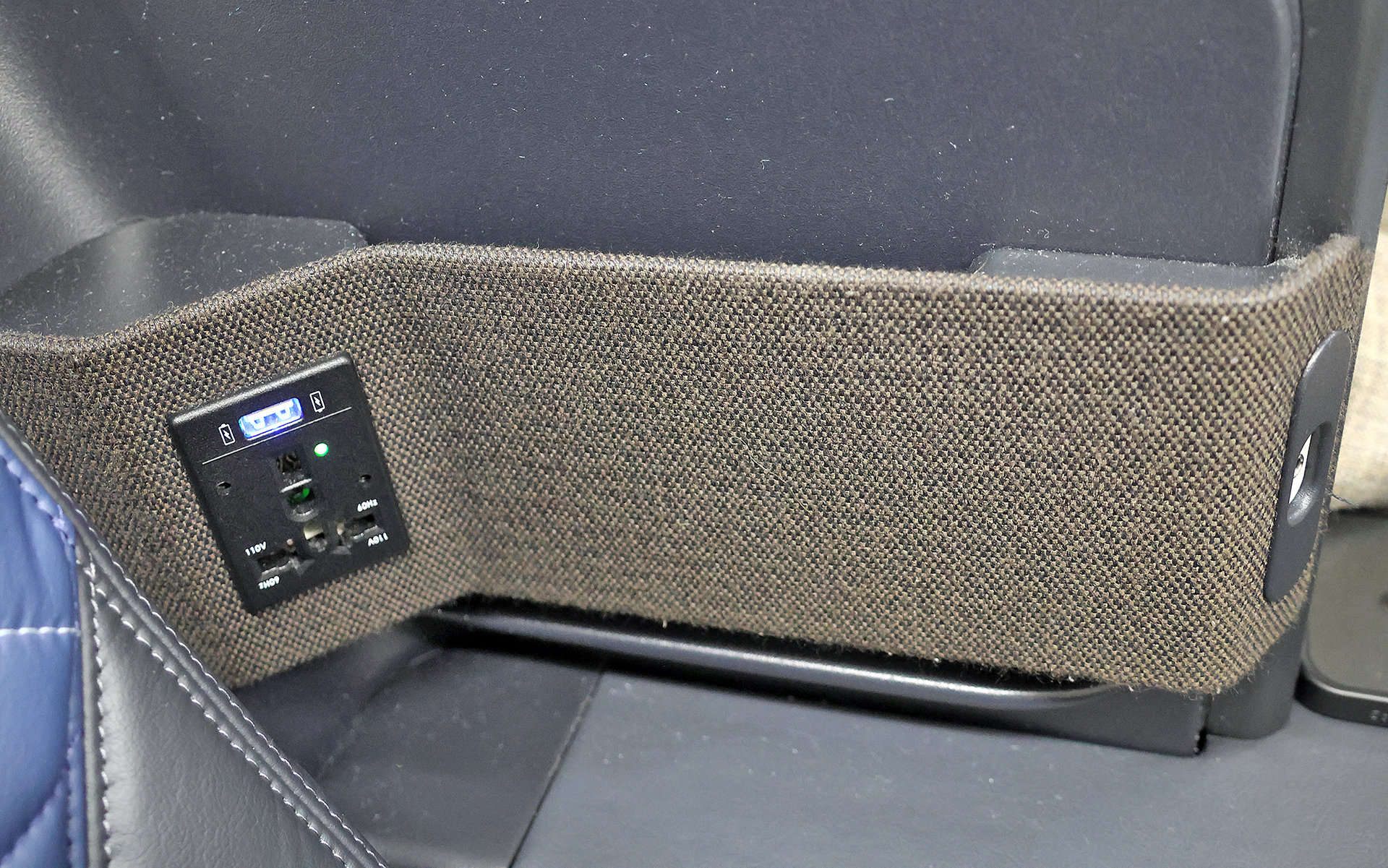 To my left were where an electrical outlet and a Universal Serial Bus Type A port were located. Both were illuminated for better visibility in the dark. A port in which to plug in headphones was also located in this area, which was rather dusty.