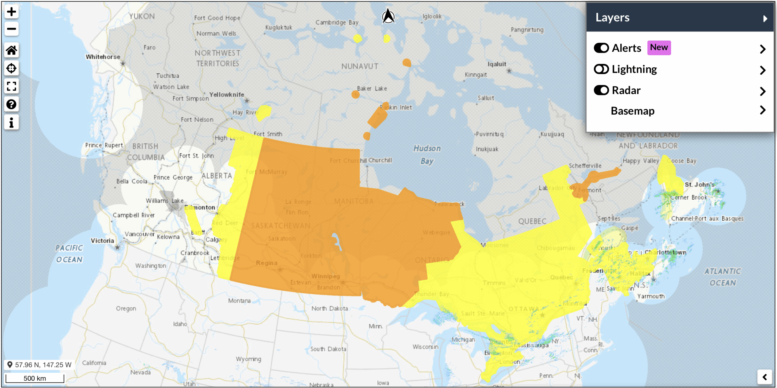 Cold warnings have officially been issued in areas from central Alberta all the way to Newfoundland and Labrador in Canada, with orange being more severe than yellow as indicated by both an interactive map and alert table by the Meteorological Service of Canada. Areas of Eastern Canada can also expect significant accumulations of snow.