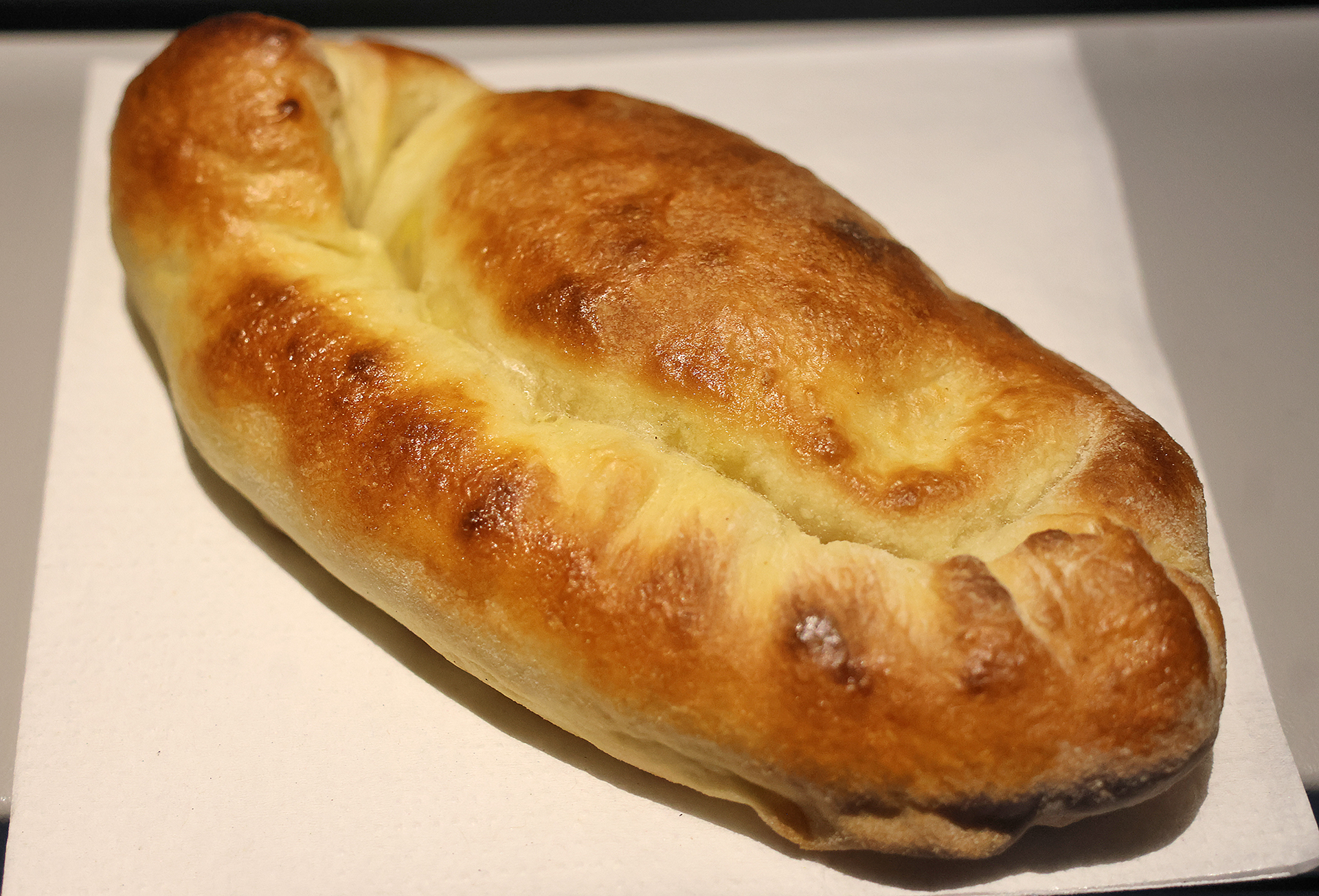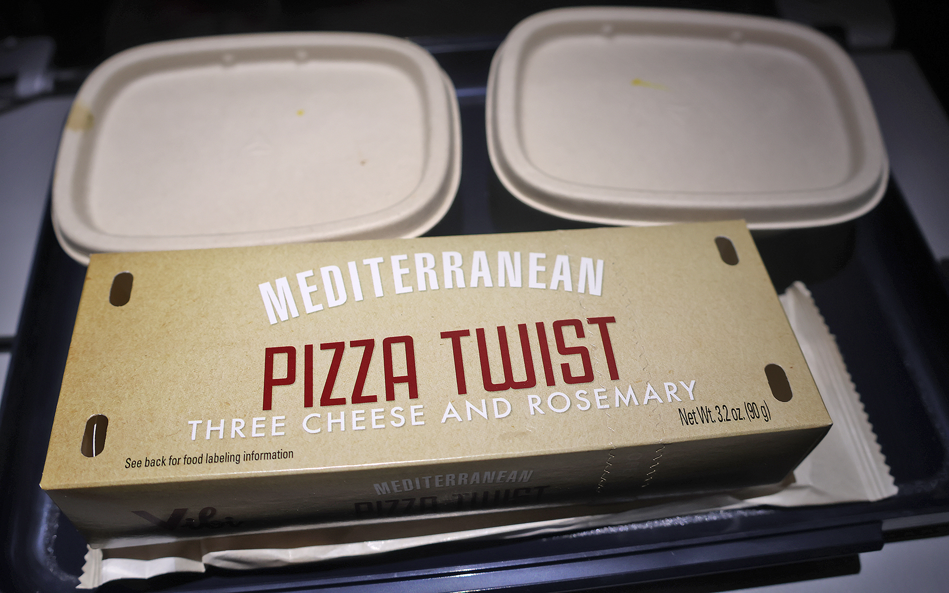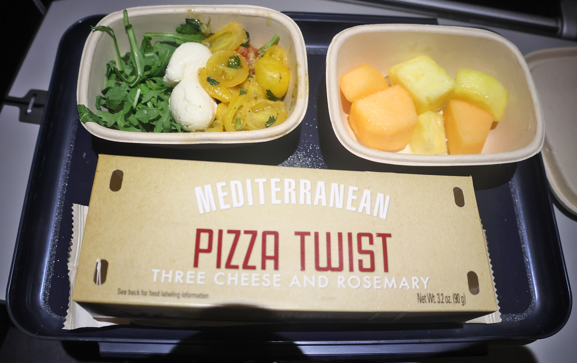 Approximately one hour prior to the airplane landing in Taipei, members of the flight crew handed out another Turkish delight: a Mediterranean Pizza Twist with three cheeses and rosemary.