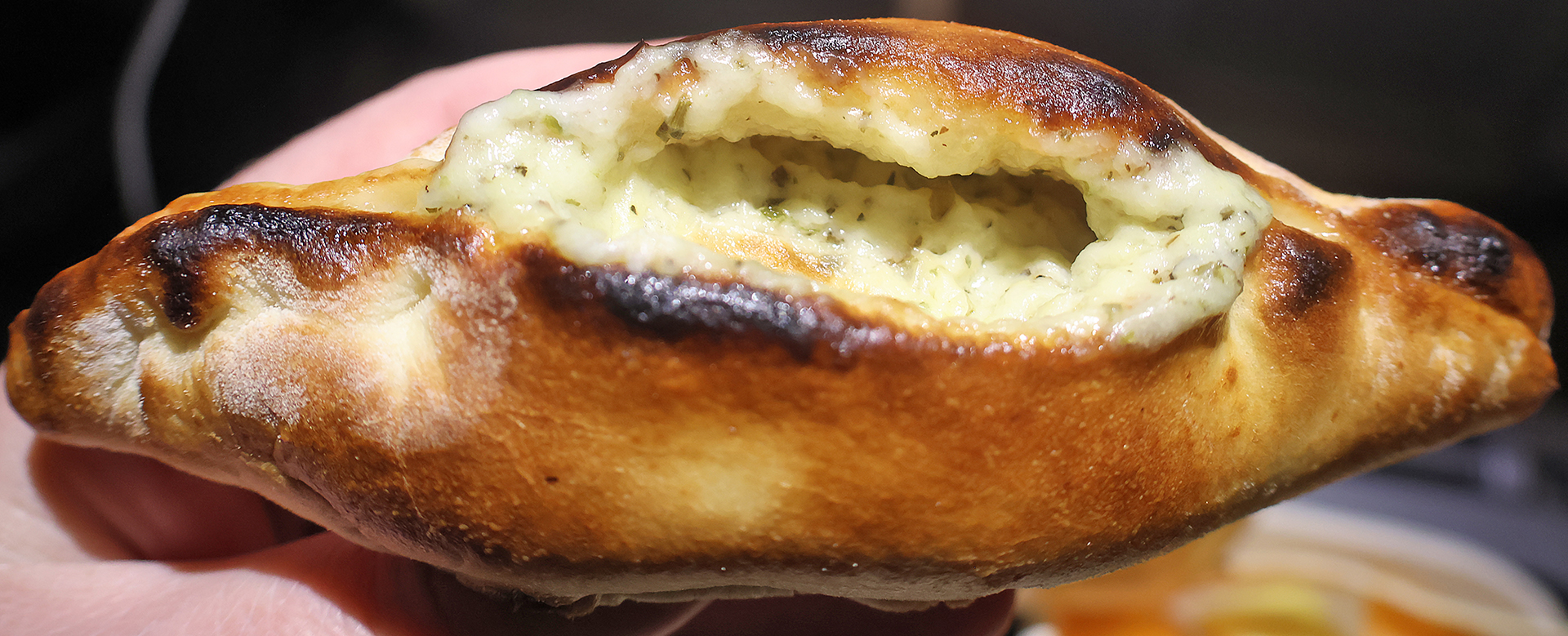 …but the inside of the calzone appeared — and smelled — unappetizing. Out of hunger, I only ate some of the crust that was not touched by the egg and cheese.