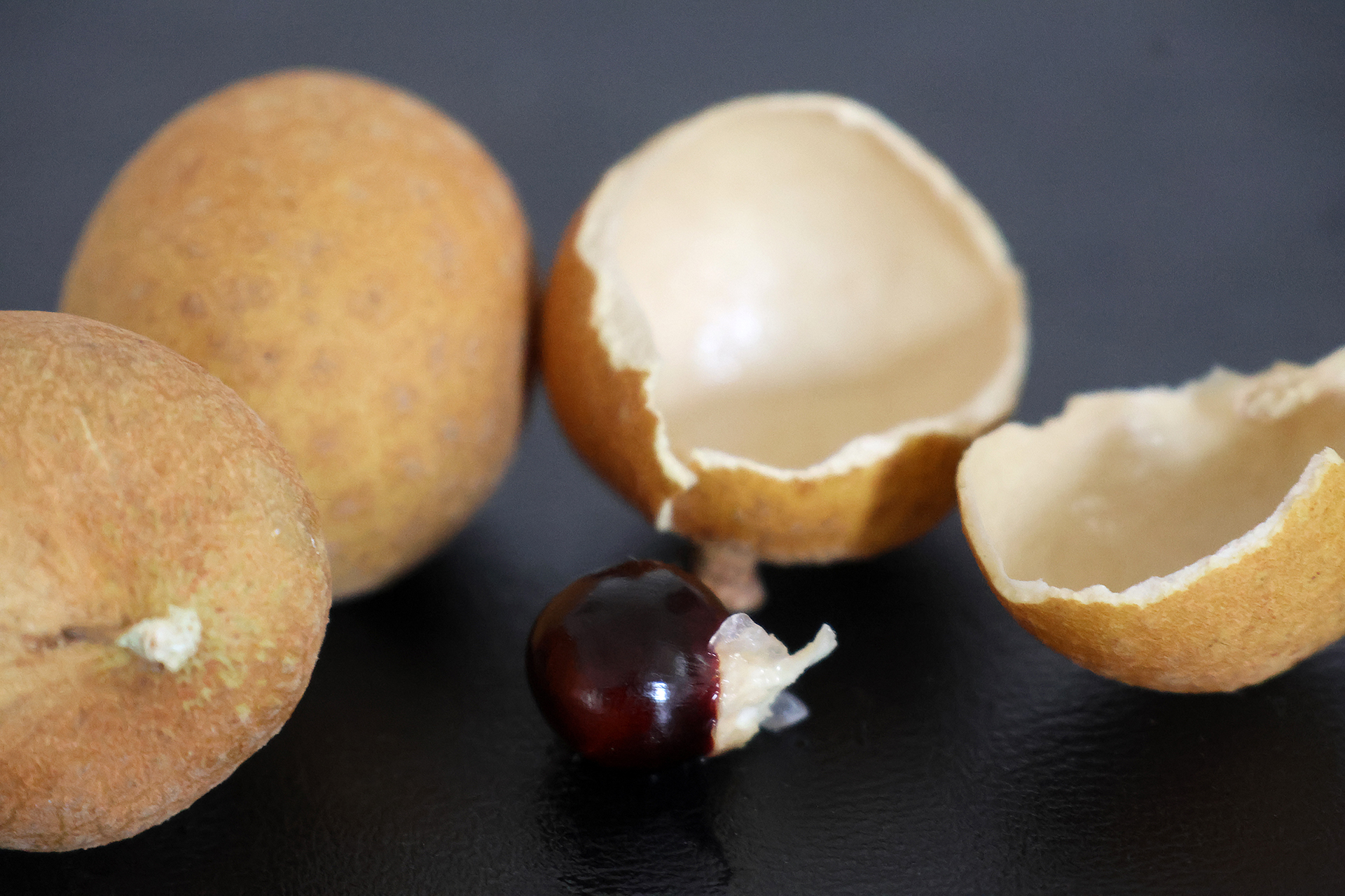 Curious, I searched for the term longan on the Internet and found that it is a nickname for Dimocarpus longan, according to this article found at Wikipedia. Comprising the core of the longan is a hard pit or seed whose appearance resulted in the tropical fruit earning the nickname dragon’s eye. Its name is derived from the Vietnamese name of long nhãn.