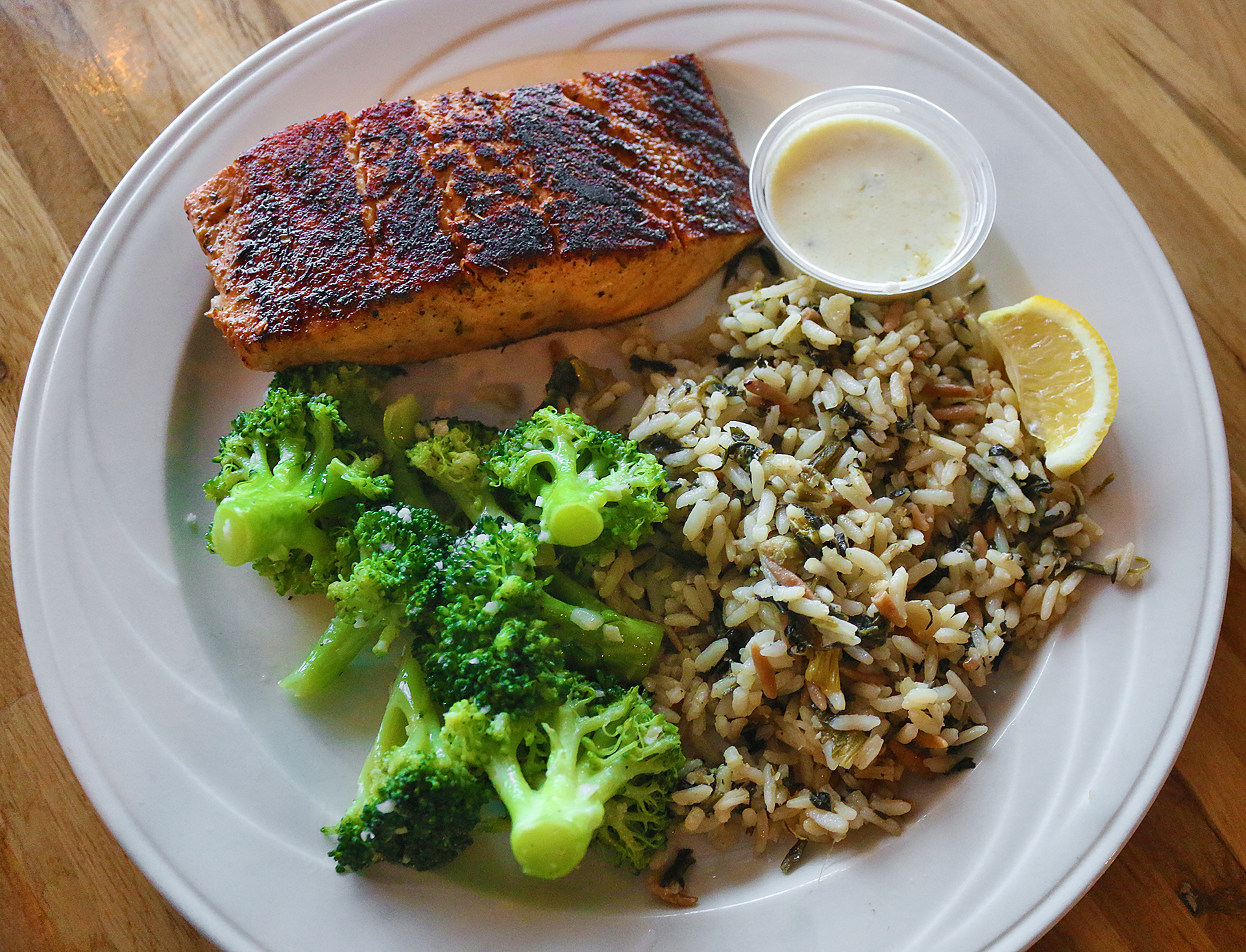 The Salmon Fillet was grilled and topped with a delicious lemon caper sauce. Spinach leek rice, broccoli, sauce, and a wedge of lemon accompanied the fish, which was perfectly seared. $30.00