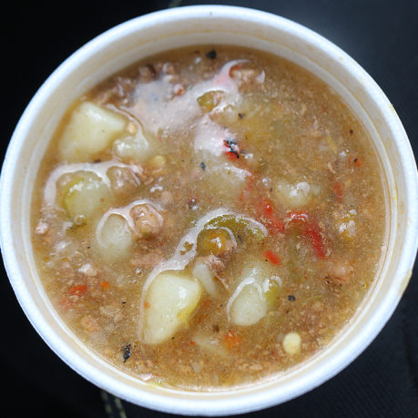 Eating Green Chile Stew in Albuquerque.