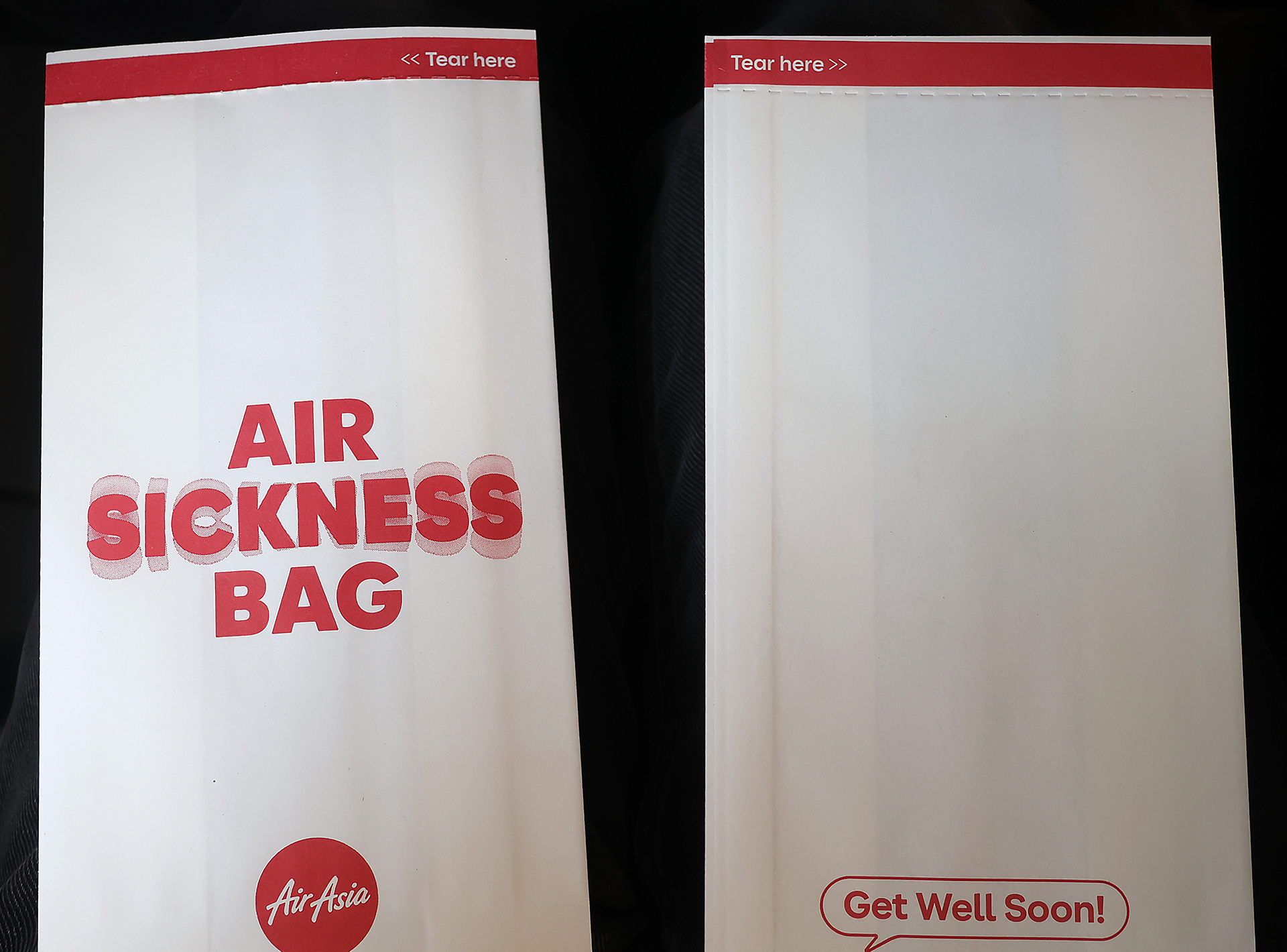 The air sickness bags hope that you will get well soon. I just thought I would throw that up there.