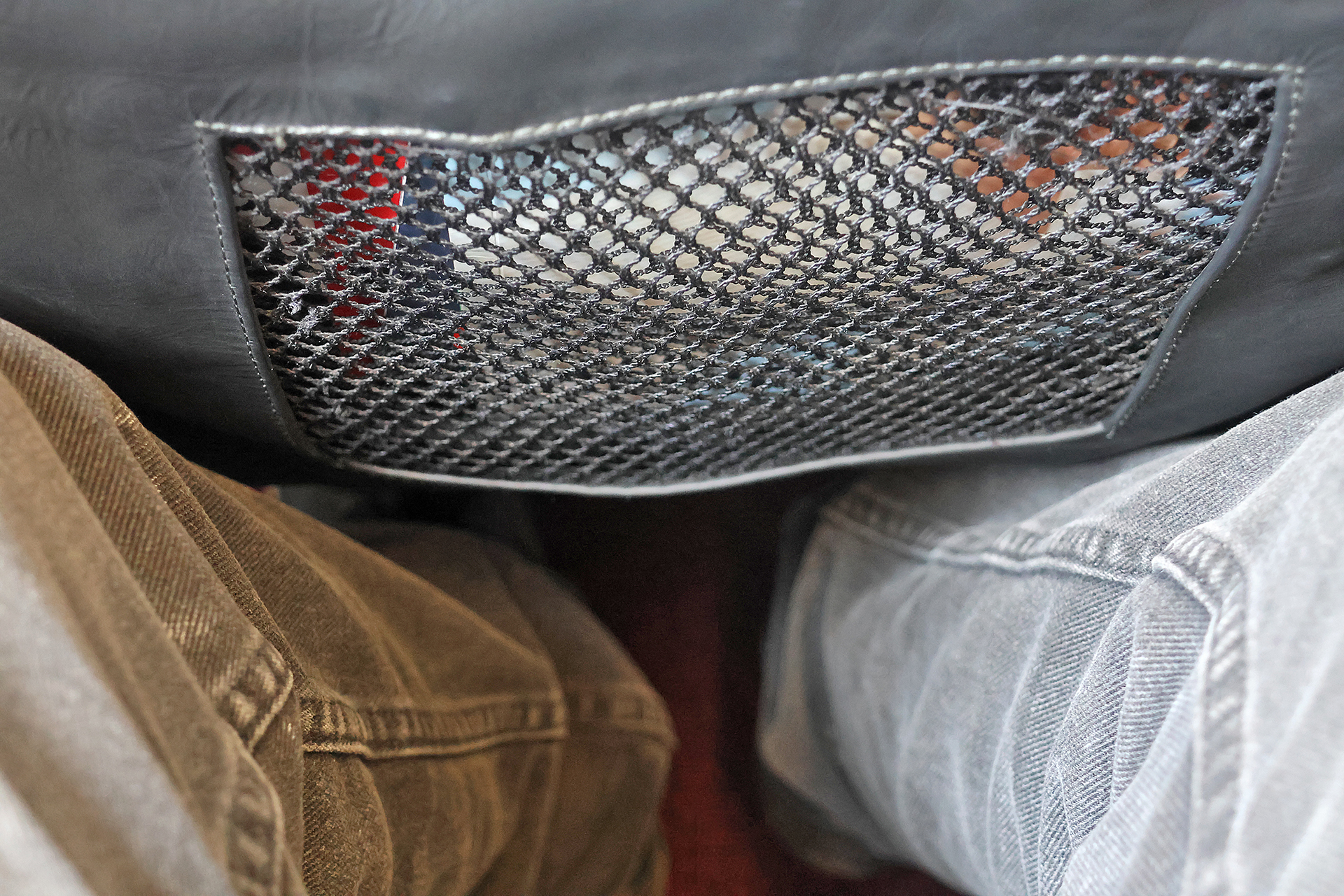 …and for a flight whose duration was only one hour and ten minutes, it was okay — but the tight leg room could potentially be unbearable on a longer flight. The multiple pieces of printed material that were stored in the mesh pocket behind the seat in front of me did not help matters…