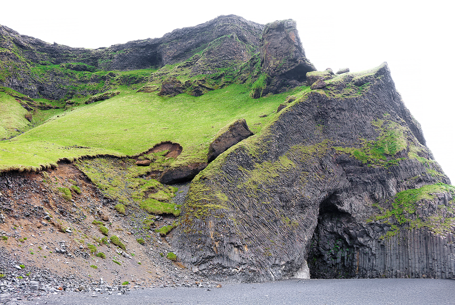 Simply walking right up to the Basalt Columns and Hálsanefshellir Cave at the beach was once possible — but the sea currently covers the land in those areas. The immense force of the surf violently tosses the aforementioned large heavy stones back and forth in the sand below the high erosion bank, which has replaced the shoreline that was once exposed.