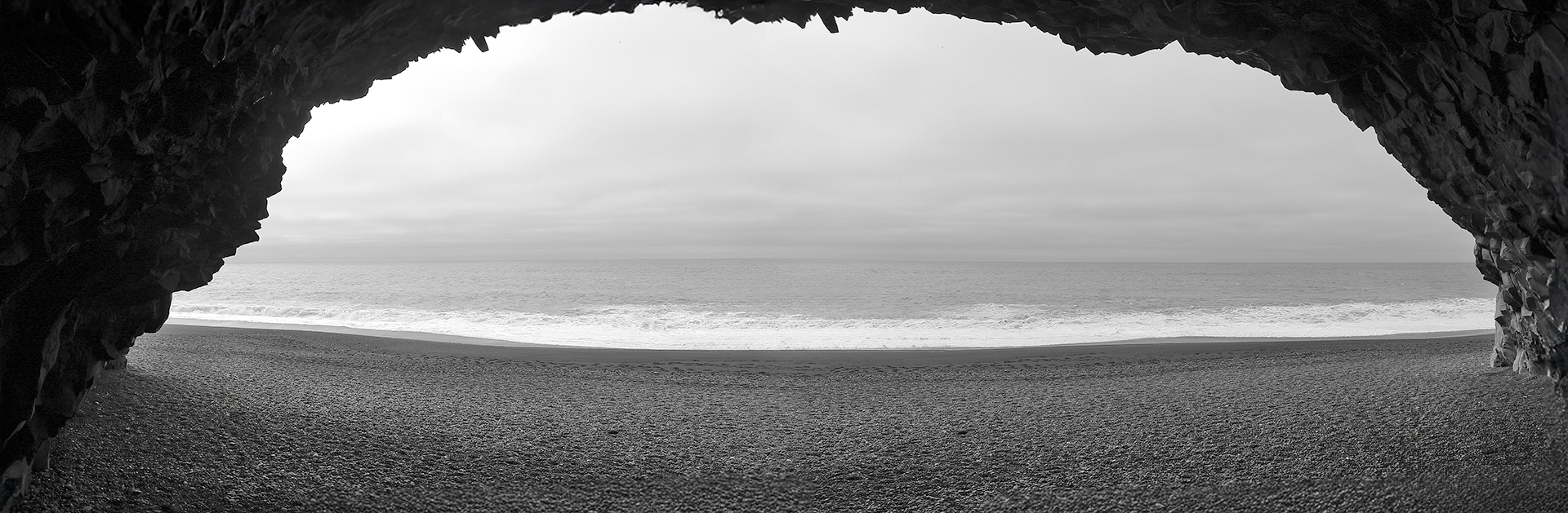 I kept one eye on the Atlantic Ocean behind me as I took a photograph of the interior of Hálsanefshellir Cave from outside.