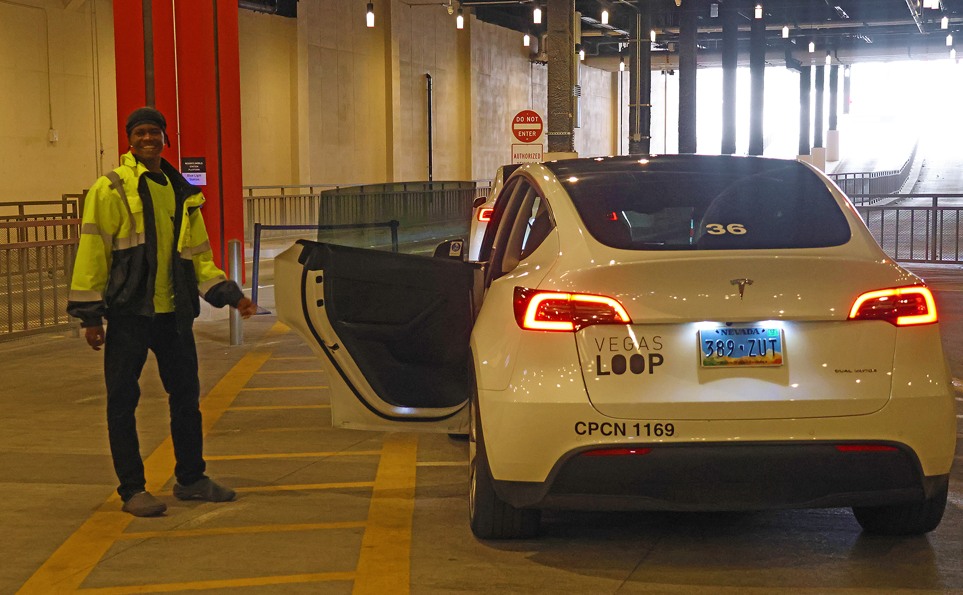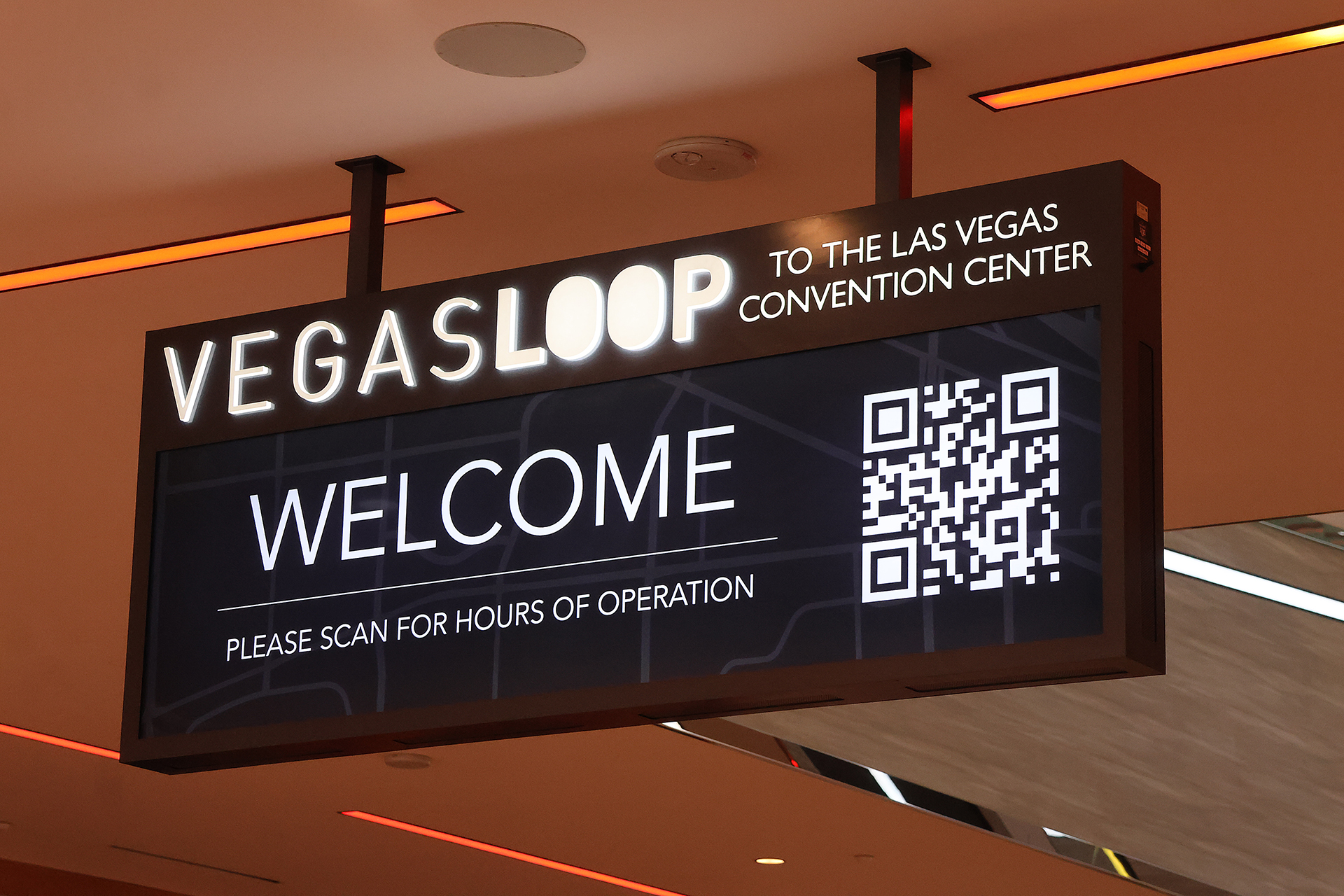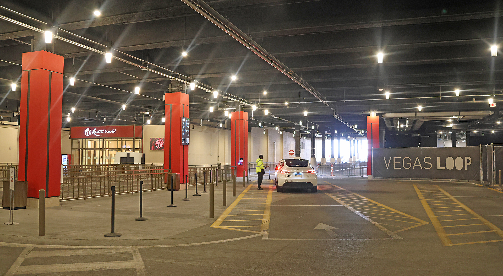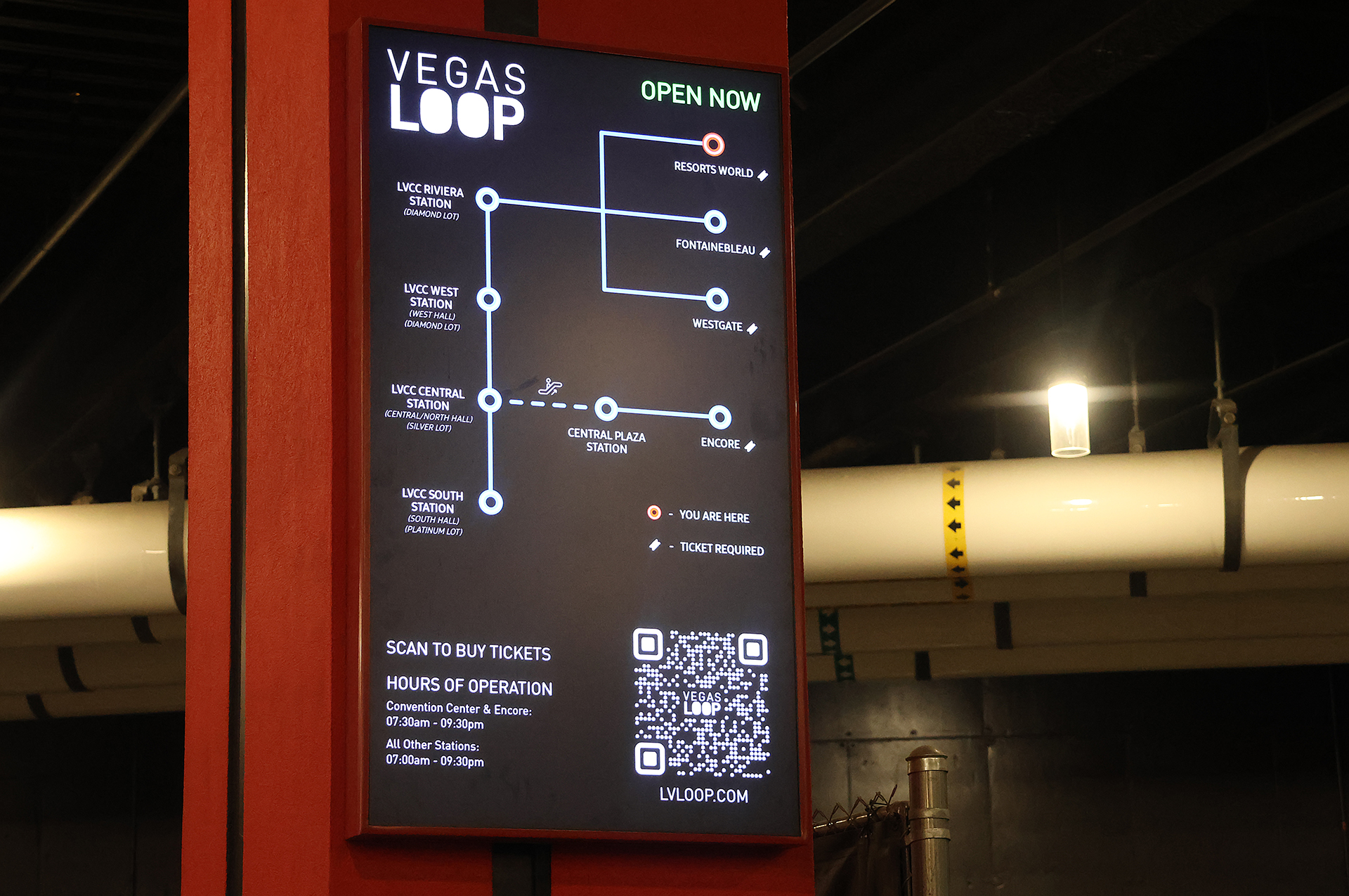The entrance to Vegas Loop is clearly marked and down a long escalator at the Resorts World station.