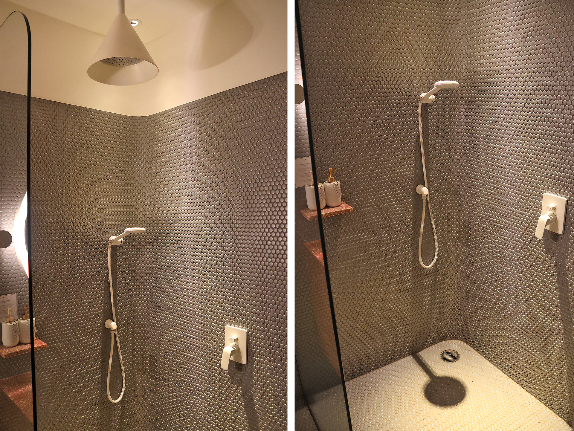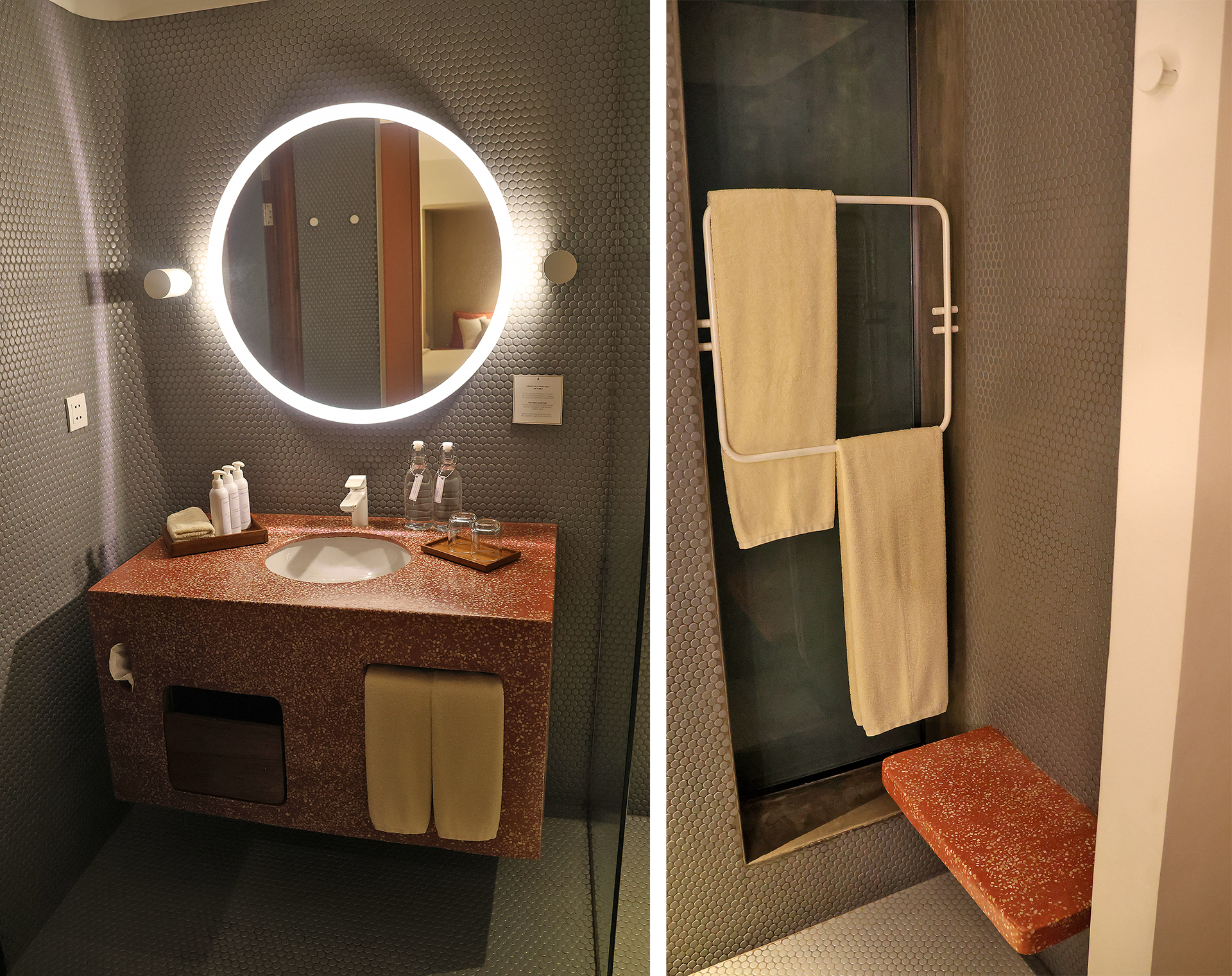 Speaking of the shower, both a rain shower had and a hand-held sprayer were available in the shower.