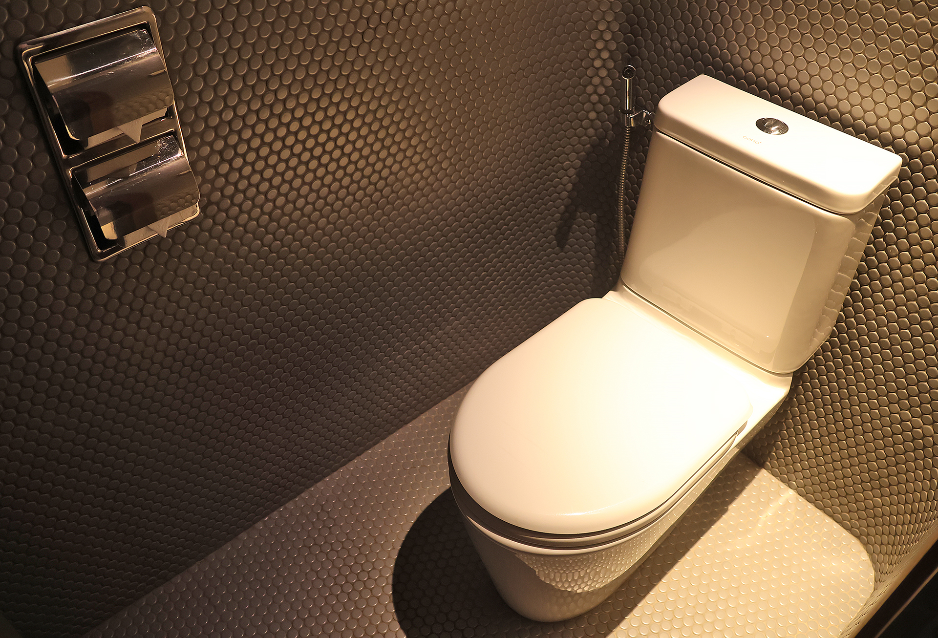 Installed next to the toilet — which was in its own private space — was a water sprayer.