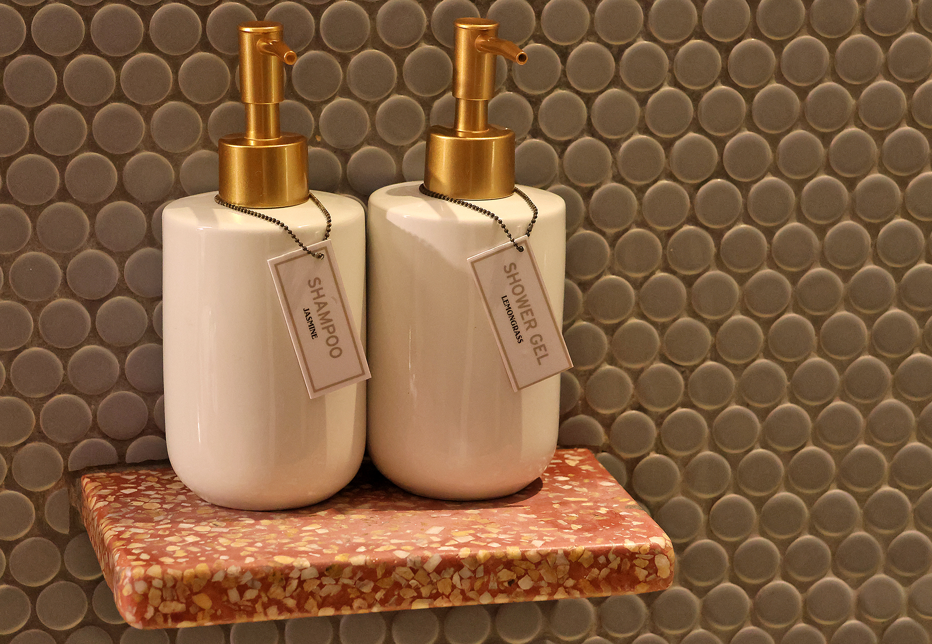 Jasmine shampoo and lemongrass shower gel were provided in the shower stall.