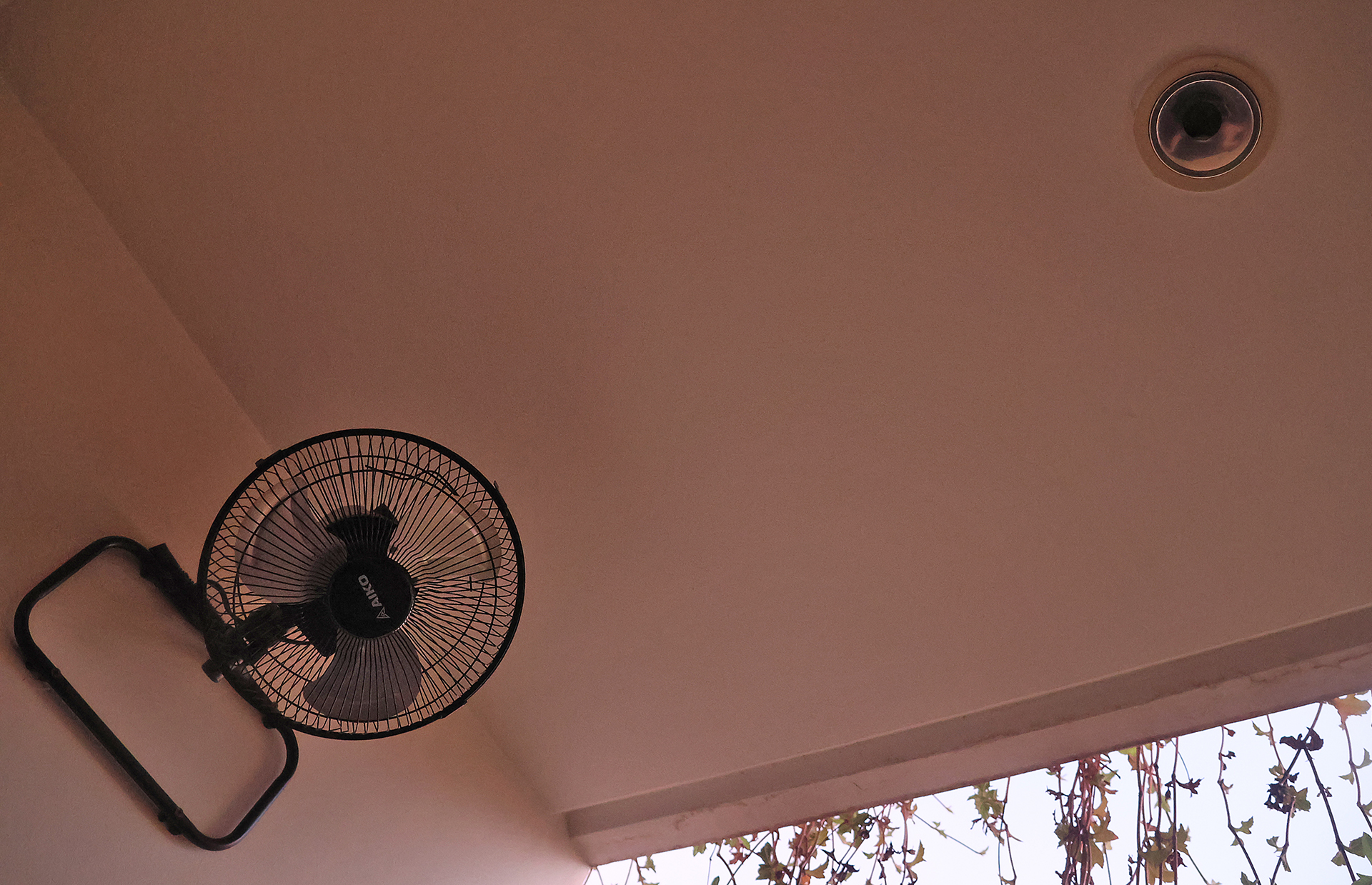 …as well as a fan to try to keep cool in the muggy humid Cambodian heat.