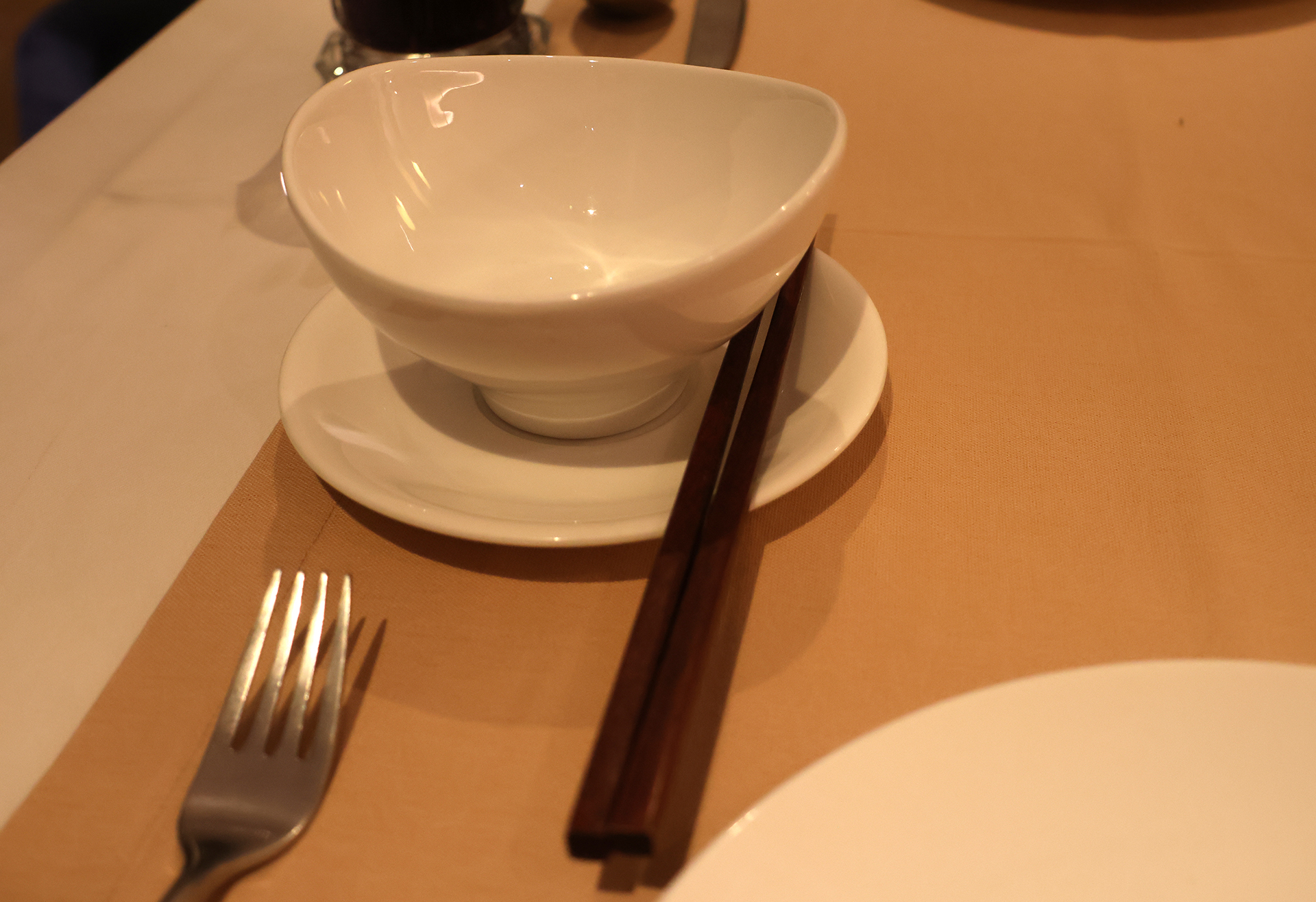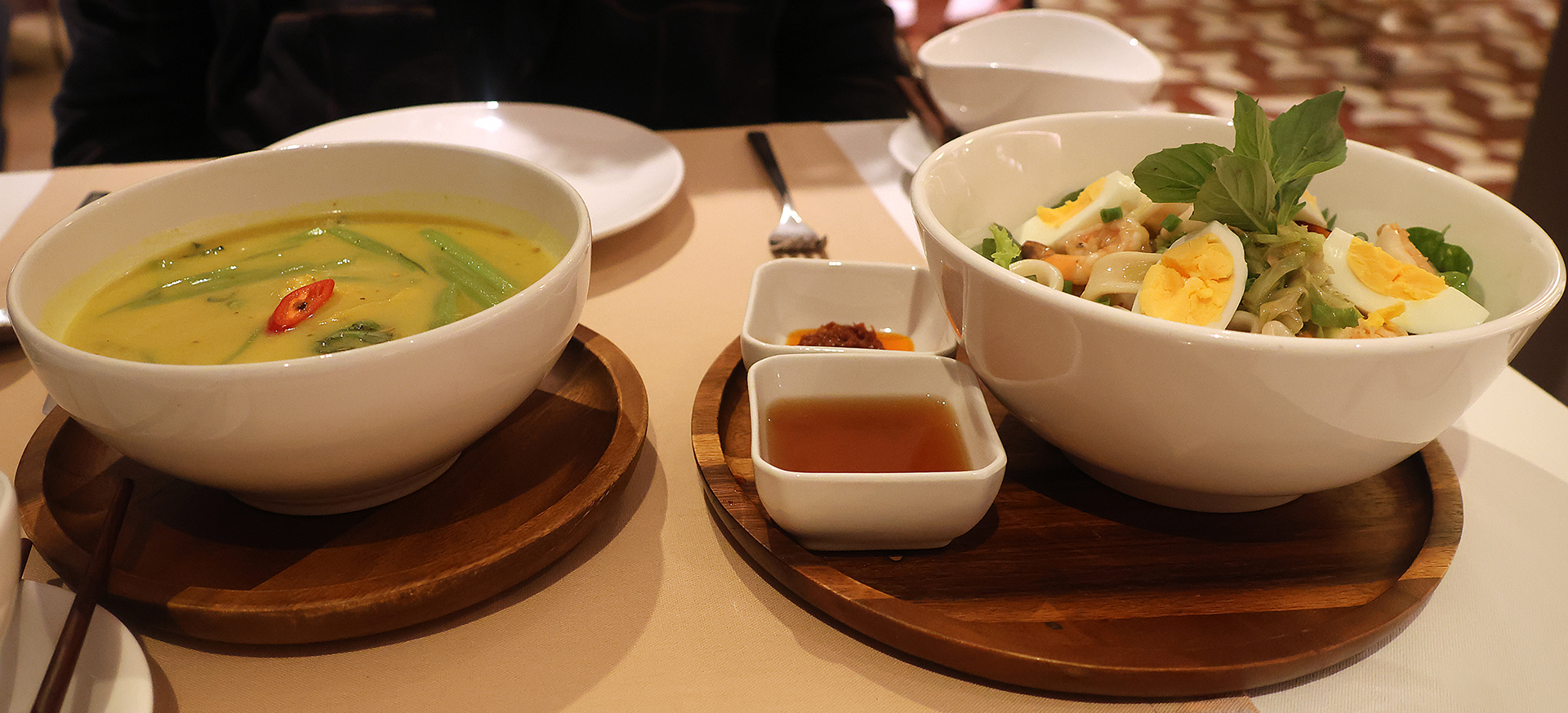 The place settings and cutlery were brought to the table by the server and arranged — and included the requisite chopsticks and small bowl. The menu offered a choice of western food or Khmer food.