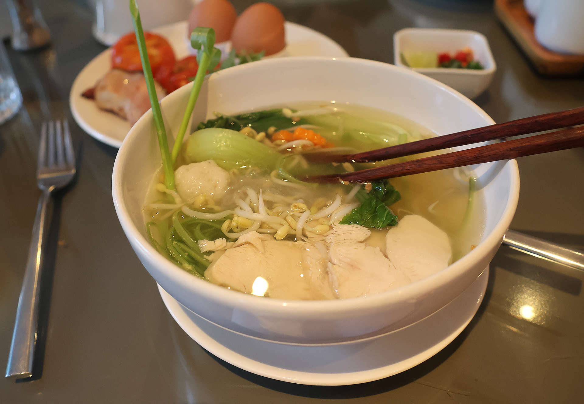 The noodle soup was very tasty, with assorted vegetables and large slices of the breast meat of chicken. I really enjoyed the glass noodles.
