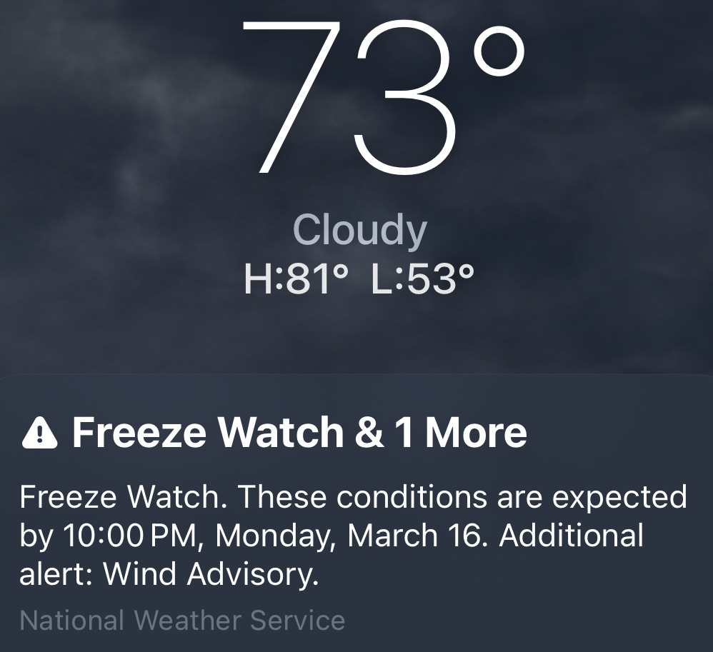 Matthew Cohen received a weather alert on his portable electronic device recently and thought that this would be a good entry in this ongoing series of articles.