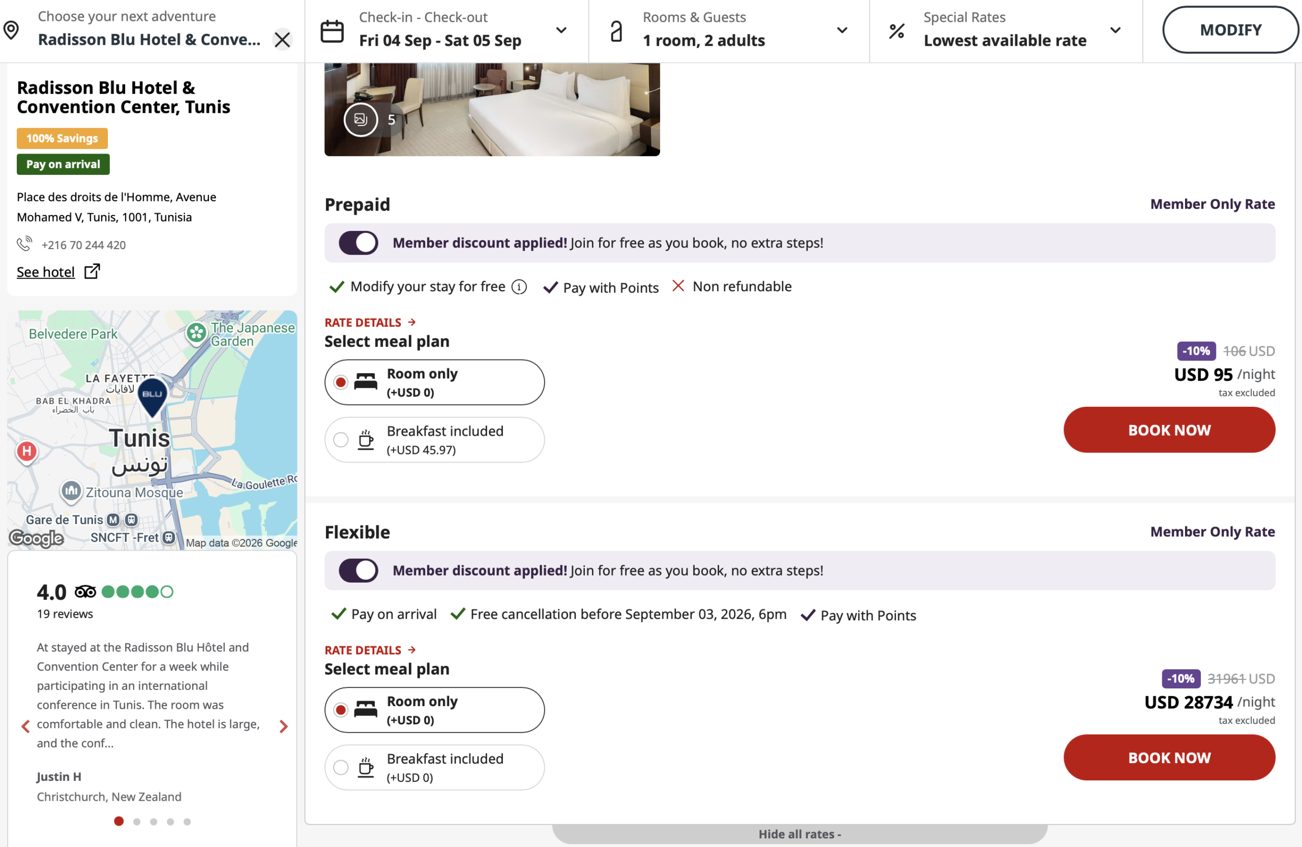 During some research for lodging options in Tunisia, I came across the official Internet web site of the Radisson Blu Hotel & Convention Center, Tunis hotel property.