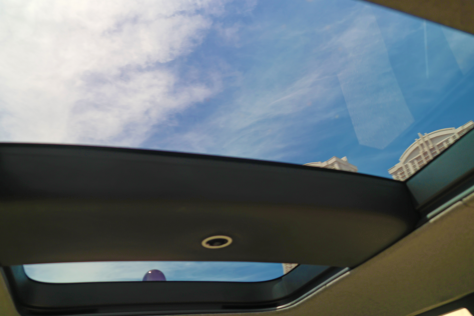 A large sunroof that was split into two allowed plenty of ambient daylight through the top of the vehicle. A small camera was located inside the dome in the center of the ceiling of the vehicle.