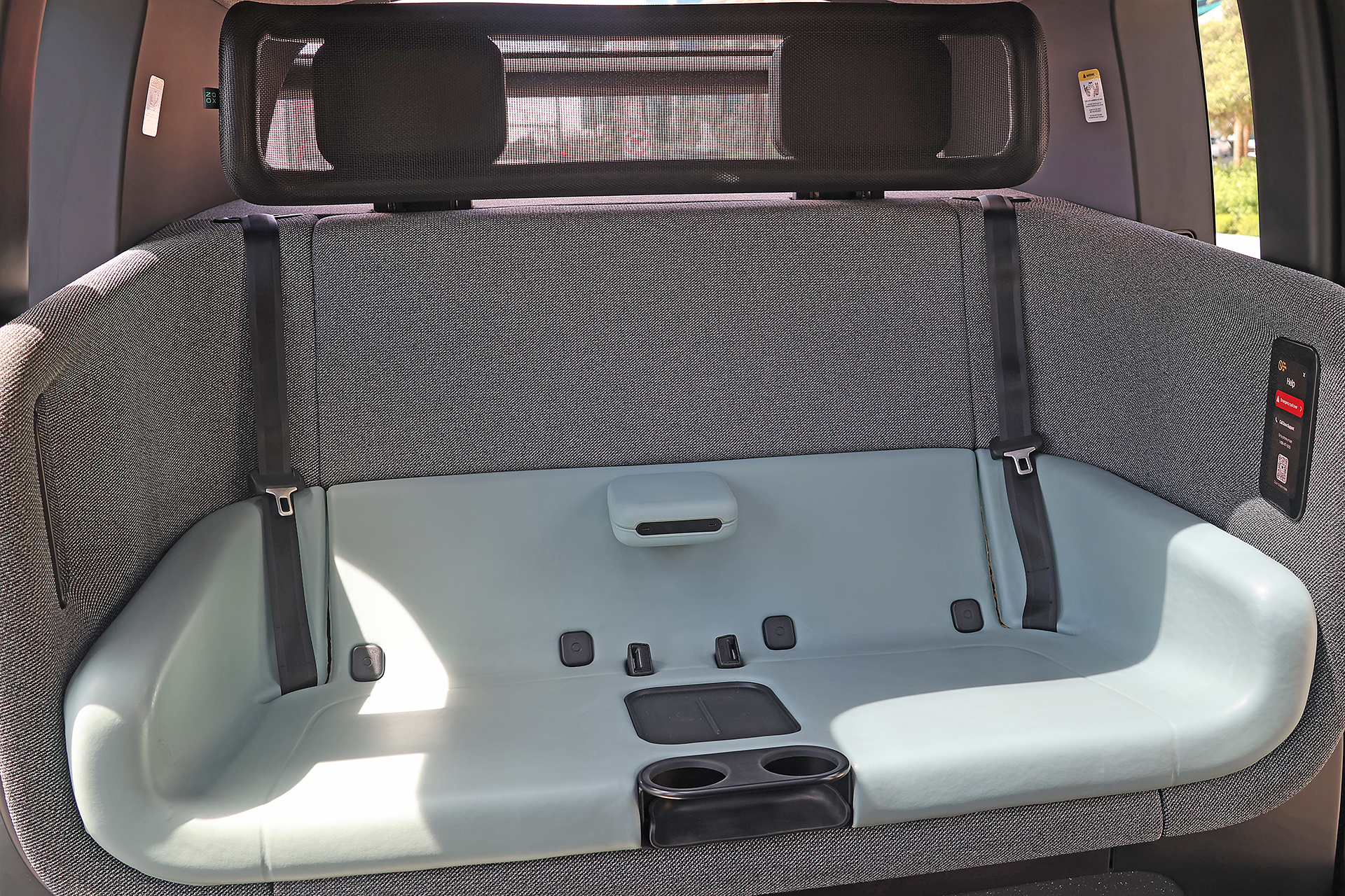 The remaining duration time of the ride, a choice of hundreds of songs from many different genres, and access to the temperature of the climate control system were some of the features which each passenger in the vehicle can use. No map was available in the vehicle itself.